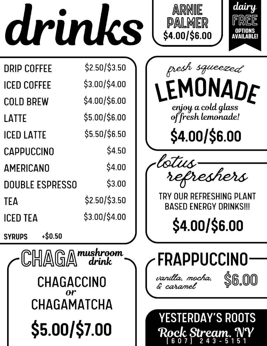 Yesterday's Roots LLC Menu